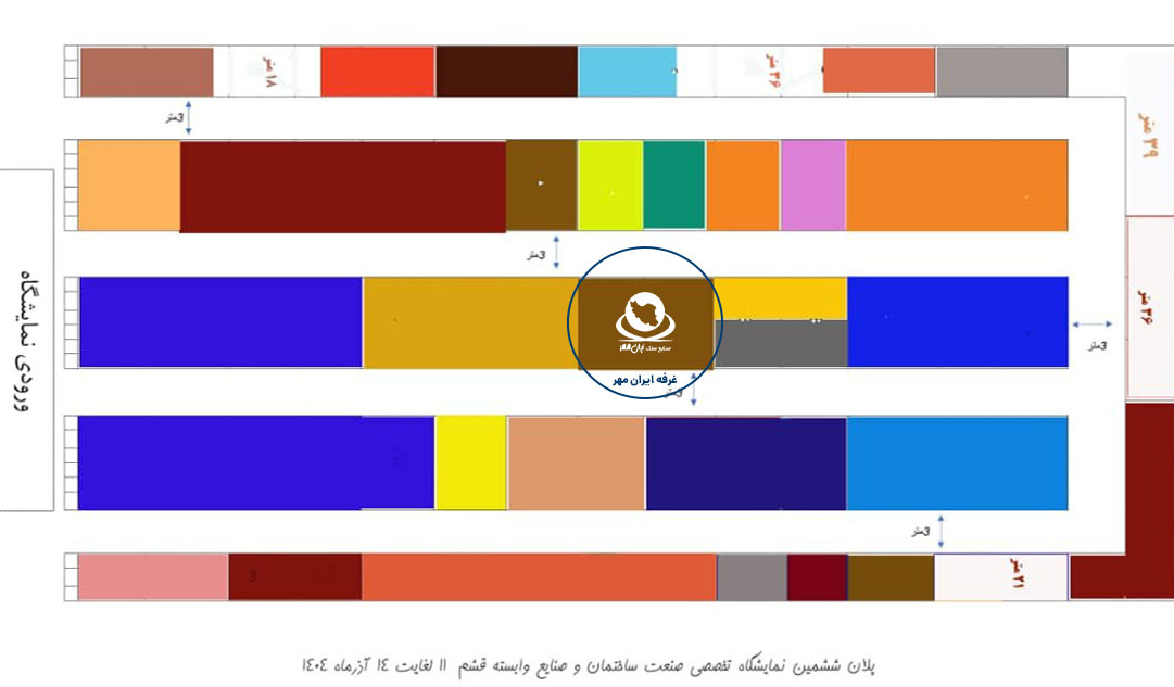 محل دقیق غرفه ایران مهر در ششمین نمایشگاه صنعت ساختمان و صنایع وابسته قشم سال ۱۴۰۴
